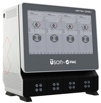 Astra Dash ist das erste modulare, pneumatisch isolierte und asynchrone Leckprüfgerät seiner Art. Es kann mit bis zu vier unabhängigen Kanalboxen konfiguriert werden, die verschiedene Prüfmethoden durchführen, darunter Druck- oder Durchflussabfall, Berstprüfung, Rissprüfung, Kriechprüfung, Differenzdruckverfahren und viele mehr. Jede Kanalbox verfügt über mindestens einen Testanschluss sowie bis zu drei zusätzliche Anschlüsse, die für zusätzliche pneumatische Leitungen, einschließlich Leak Master-Referenzgeräten, konfiguriert werden können.