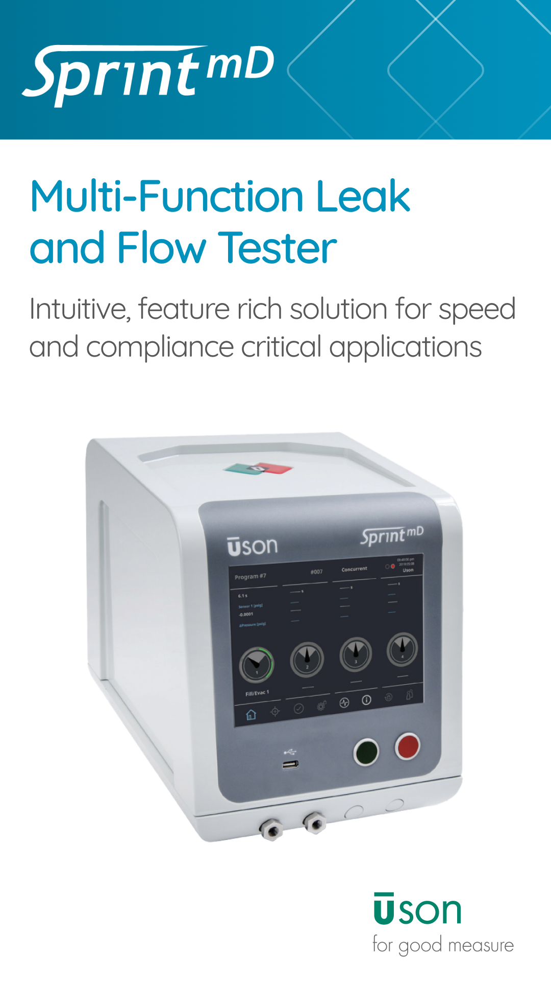 Die Benutzerfreundlichkeit und einfache Validierung haben zum weltweiten Erfolg der Sprint-Serie von Uson geführt. Das Sprint iQ ist ideal für die Dichtheitsprüfung von Medizinprodukten. Es kann 13 Arten von Prüfungen für Geräte wie Katheter, Schlauchsets und andere medizinische Produkte durchführen und ist mit bis zu vier Kanälen erhältlich, um Ihren Anforderungen gerecht zu werden.